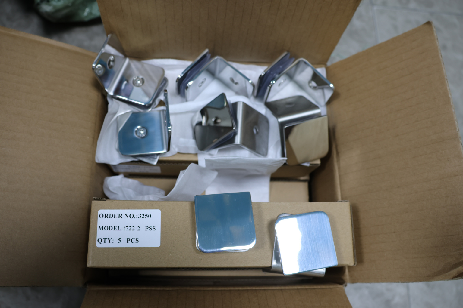 Коннектор для душевой кабины стена-стекло 90°, 45х45, полированный. Марка стали - AISI 304