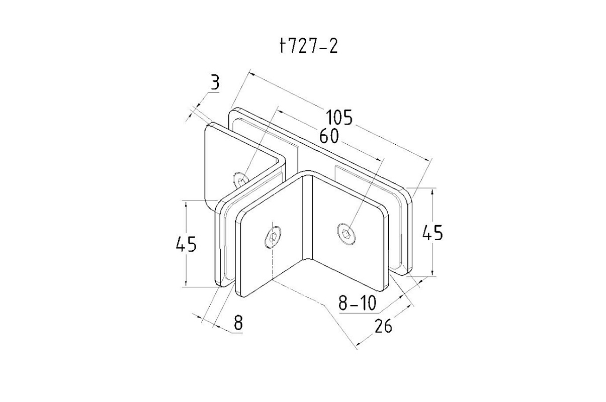 Коннектор для душевой кабины на 3 стекла полированный t727-2 PSS