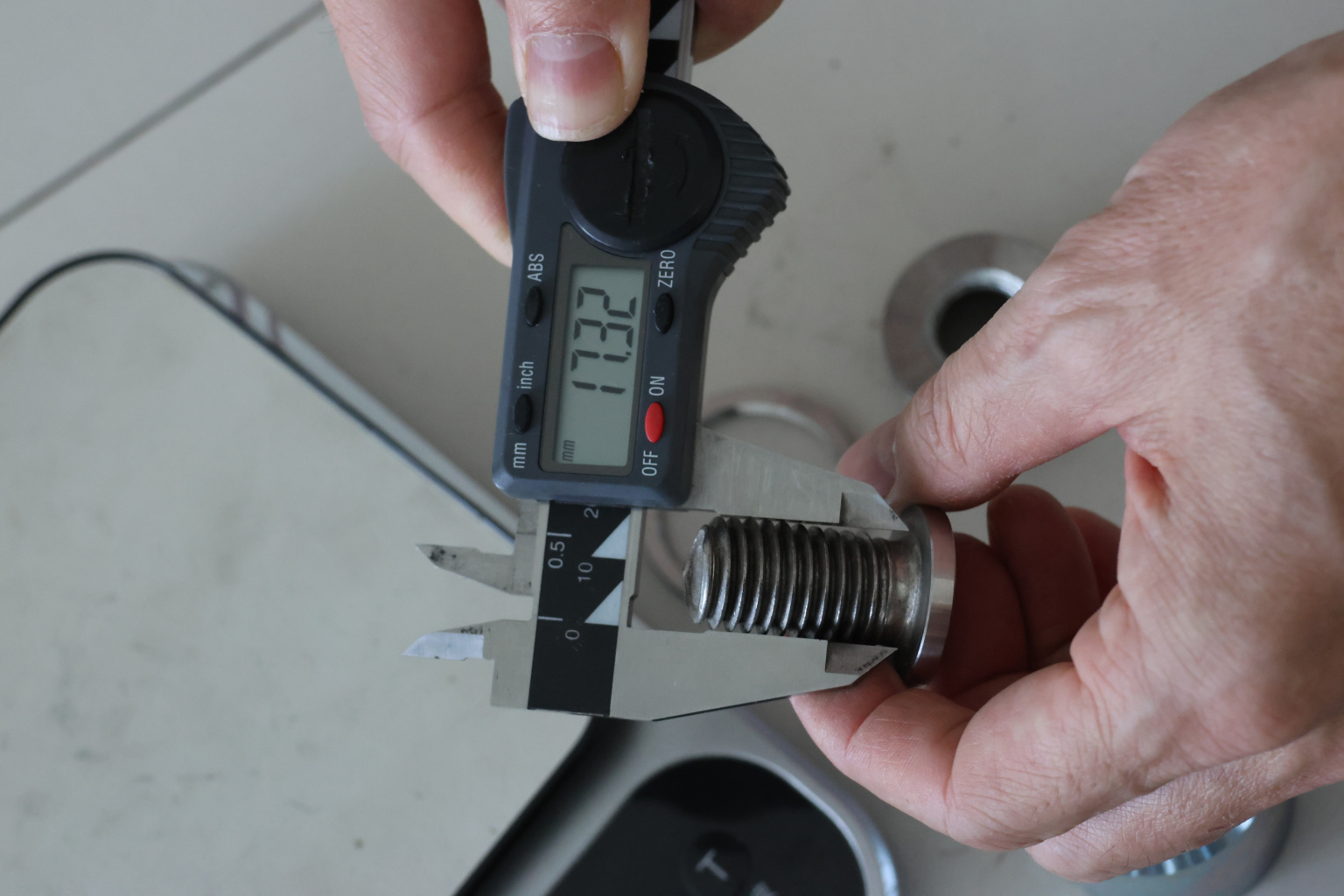 О-болт. Деталь состоит из трёх основных элементов: основания, регулировочной шайбы и винта. Основание выполнено из чёрного металла, а шайба и винт из стали AISI 304. Основание имеет диаметр 44 мм. Винт с прослабленной резьбой М16. Регулировочная шайба позволяет устанавливать расстояние крепящегося элемента в диапазоне одного сантиметра. Выдерживает нагрузку более 300 кг.