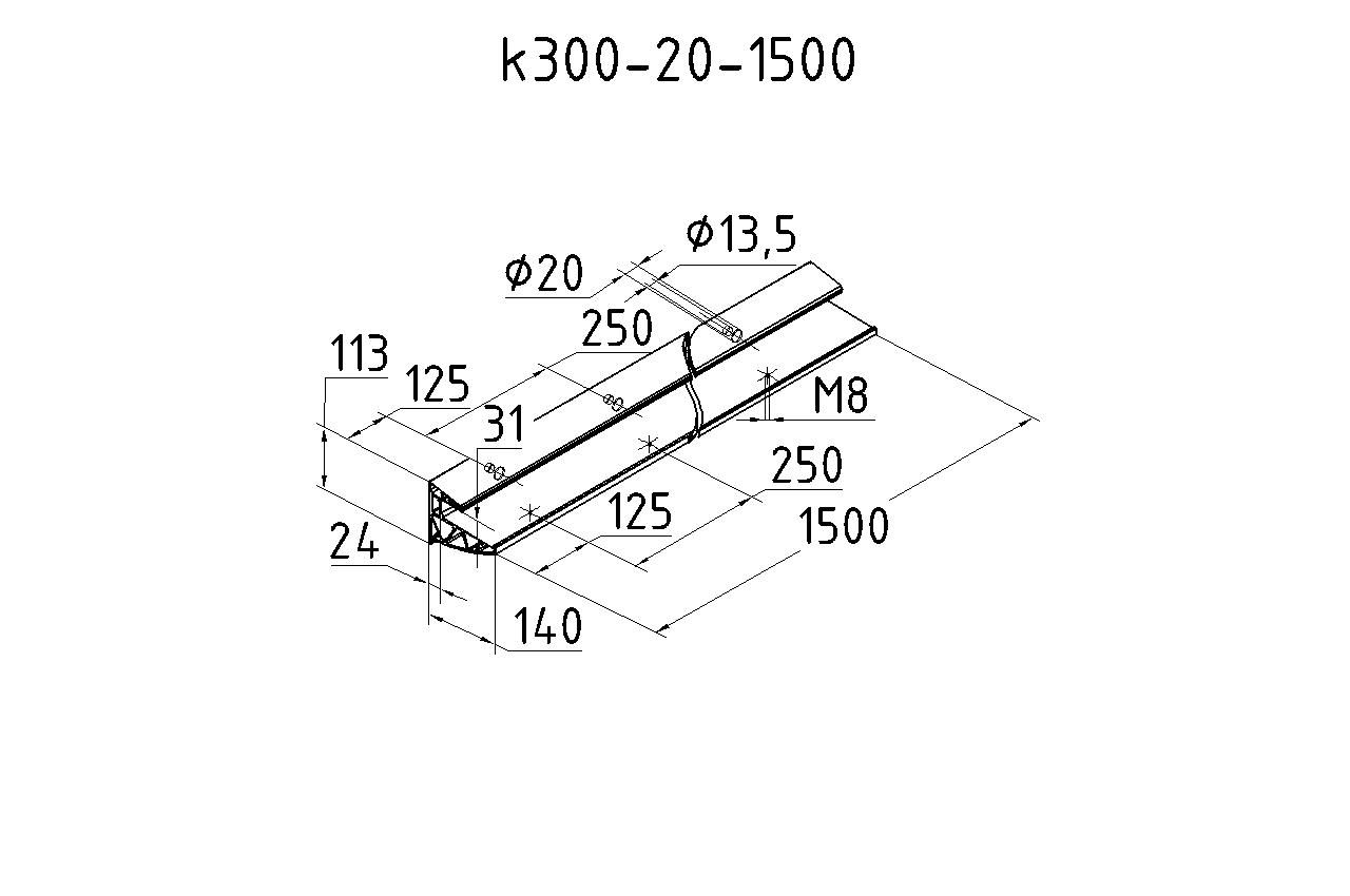 2. Просверлить отверстия диаметром согласно выбранным анкерам (рекомендованы М12х18х125 мм), установить профиль k300-3 и затянуть;