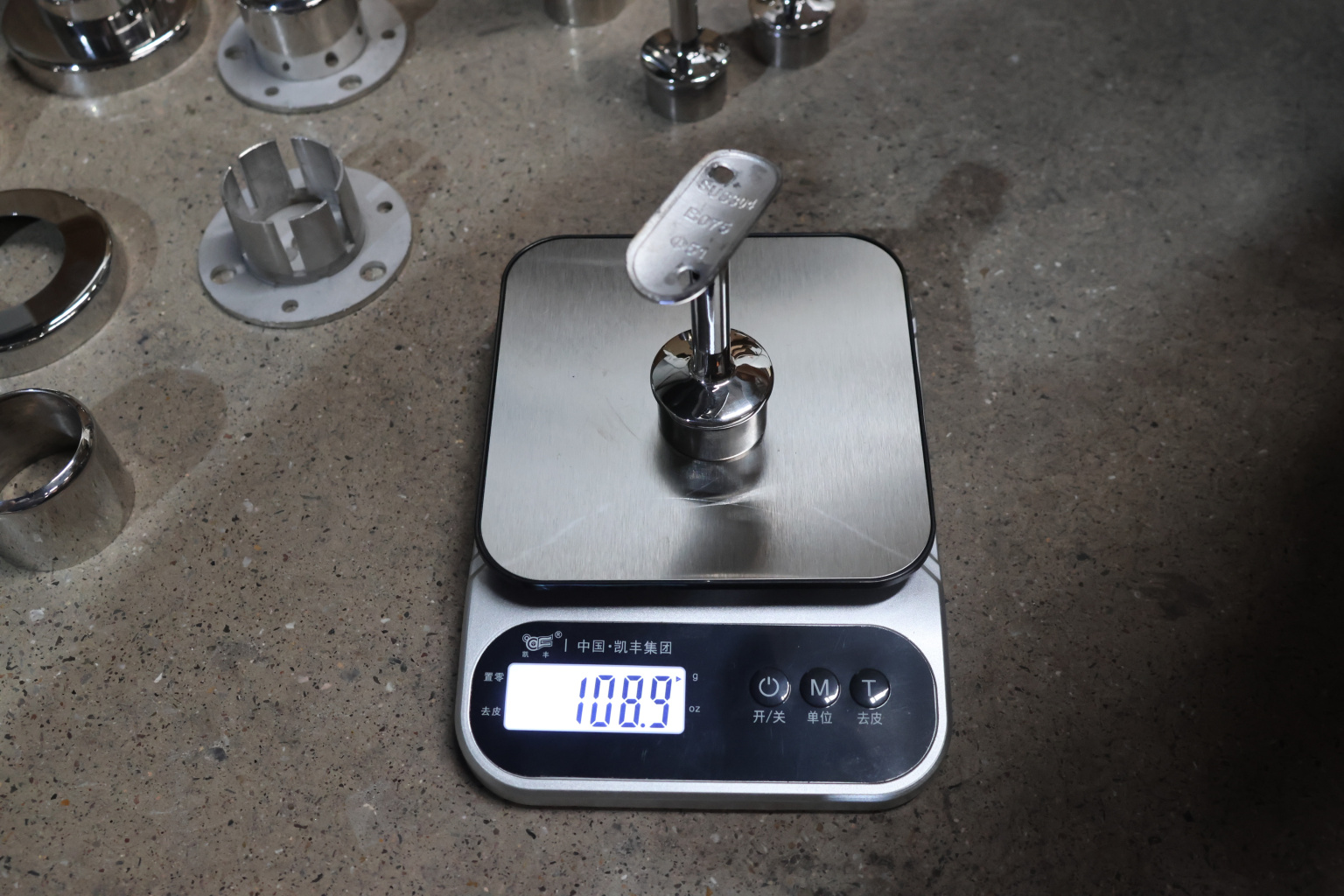Наконечник палец с регулируемым ложементом под поручень Ø38.1-42.4 мм, на стойку Ø38.1х1.5 мм, литой, полированный, нержавеющий (AISI 304) k006-7
