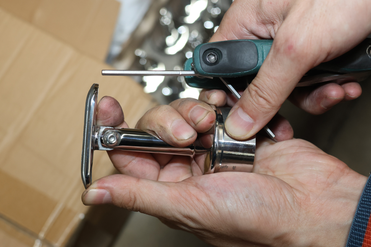 Наконечник палец на стойку Ø50.8х1.5 мм с регулируемым ложементом под поручень Ø50.8 мм, литой, полированный, нержавеющий AISI 304 k042