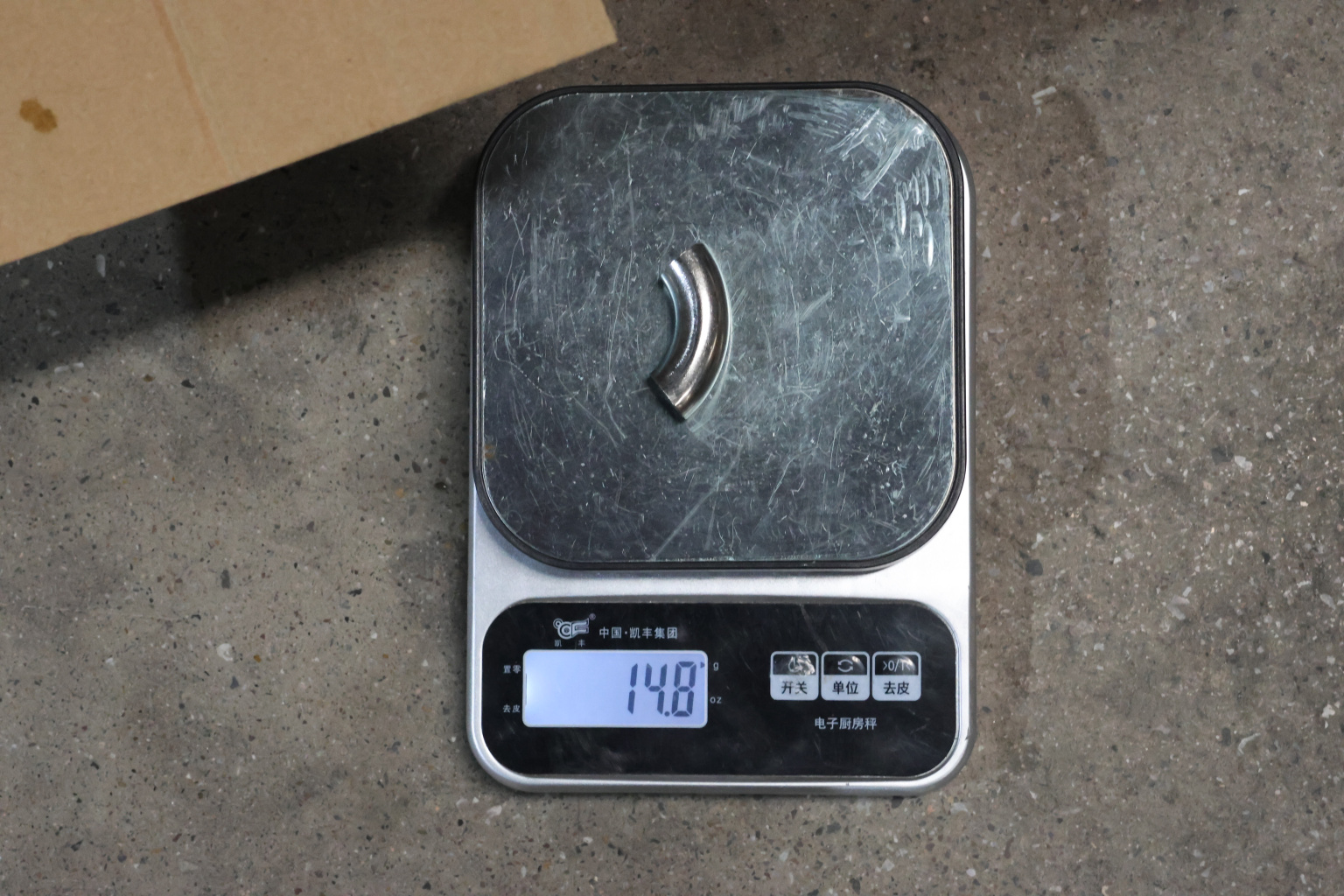 k205- Отвод ригеля под сварку диаметром 16.0х1 мм. Деталь полированная 400Grit, сварная, марка стали - AISI 304. Главное отличие- марка стали. k205 используется для внешних работ.