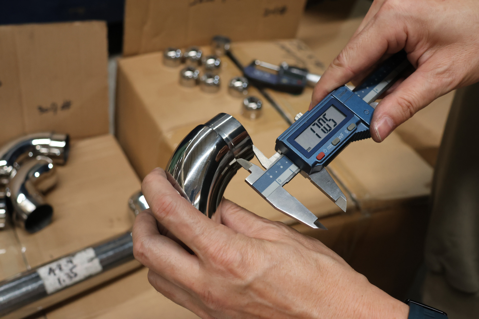 Отвод оконечный литой с круглой заглушкой Ø42.4 AISI 304 #600 k373