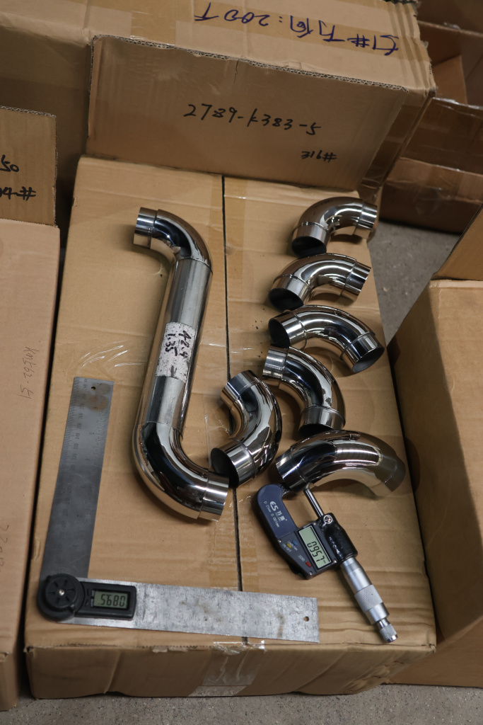 Отвод поручня под Ø42.4х1.5 мм, 90°, литой, полированный 600 Grit, с двумя установочными кольцами (aisi 316) k383-5