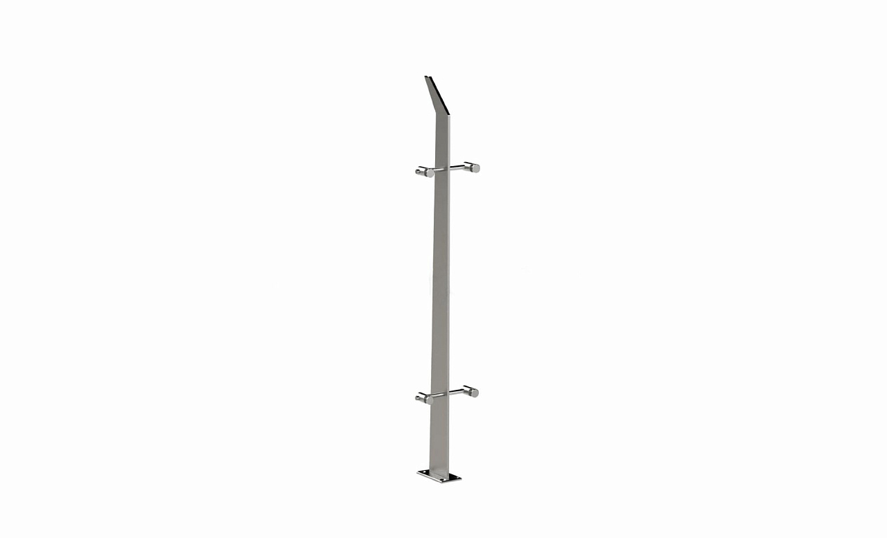 Стойка эксклюзивная с двумя спайдерными стеклодержателями, крепление в пол, нерегулируемый ложемент (AISI 304) k760