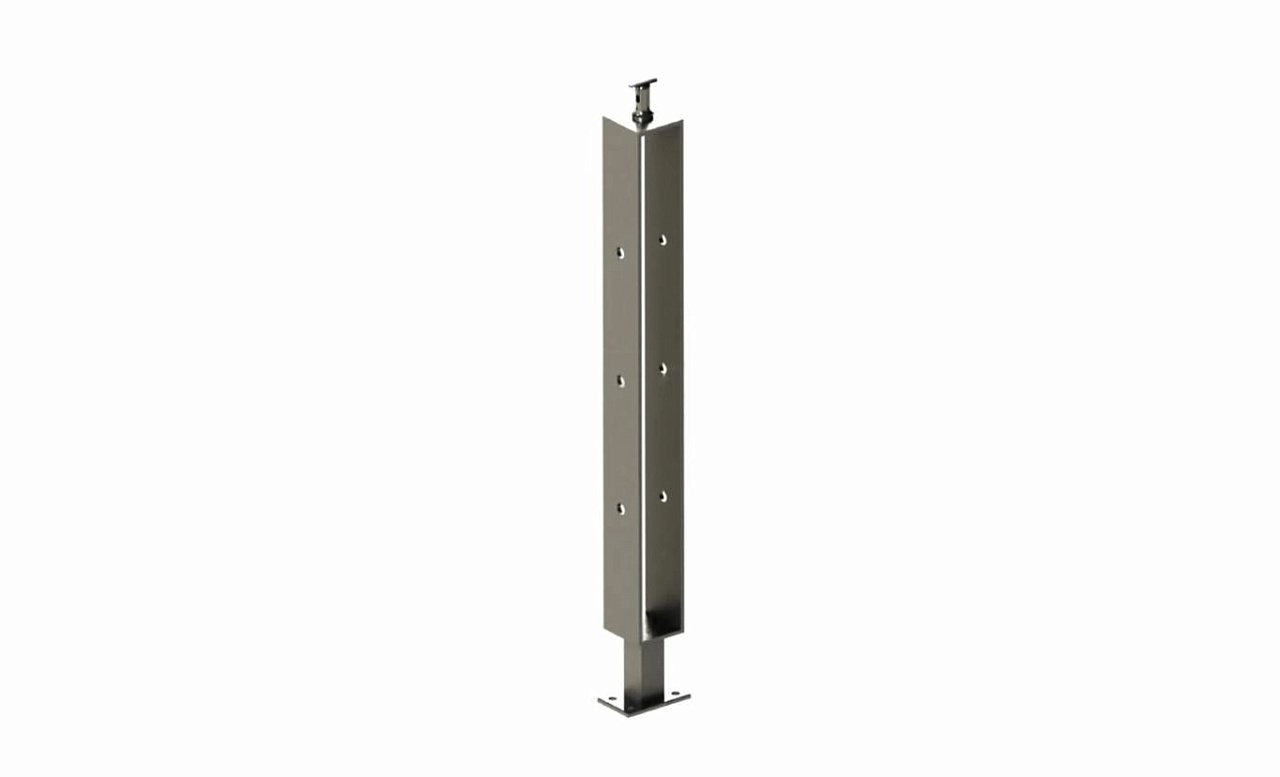 Стойка эксклюзивная квадратная с 3 отверстиями под ригель, крепление в пол, регулируемый ложемент (AISI 304) k785