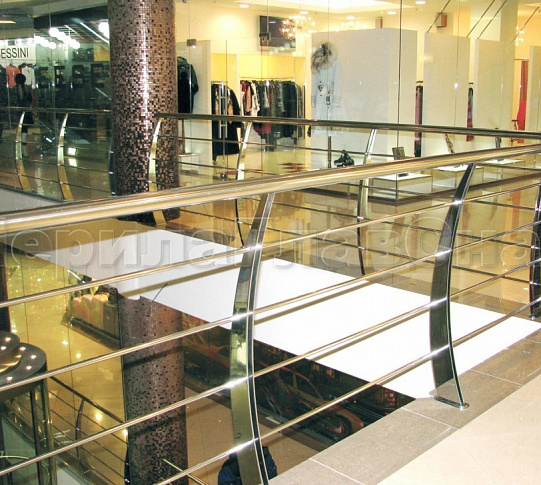 - Ограждение со стеклом или четырьмя ригелями на стойках из нержавейки