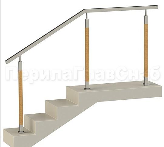 - Нержавеющие ограждения без ригелей с квадратным поручнем и стойками с деревянными вставками