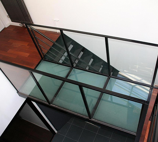 Стеклянный пол для легкого перекрытия между этажами
