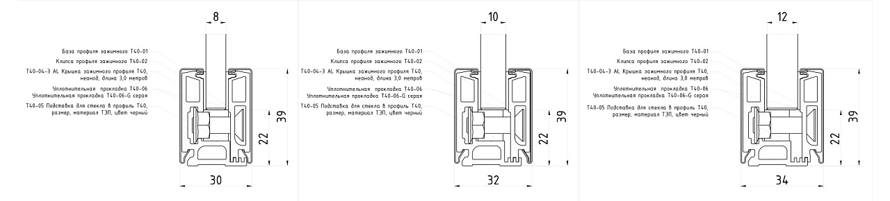 т40-12-30 SSS торцевая заглушка и проставка т40-05 для стекла в профиль заказывается отдельно.