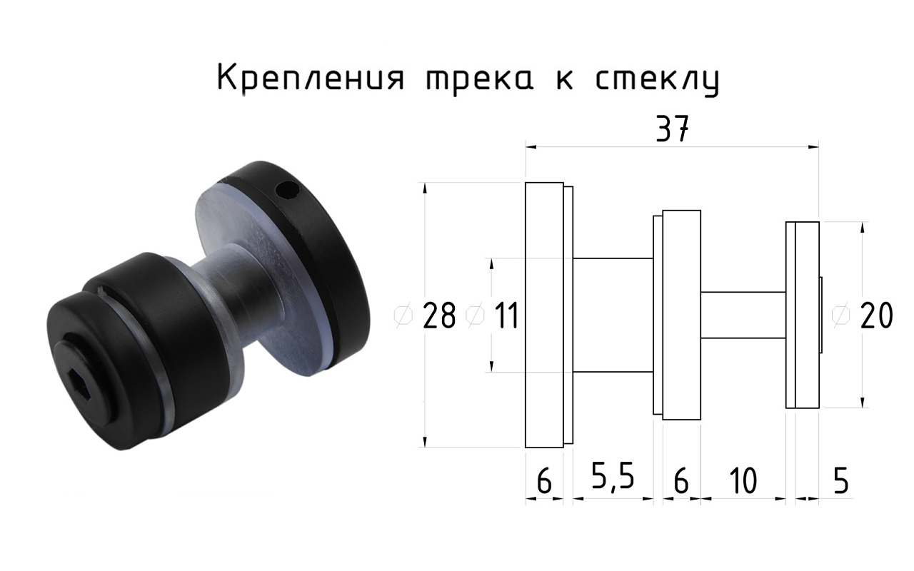 На трек устанавливаем стопора и крепления трека к стеклу из комплекта к треку. Устанавливаем трек на крепление стена-труба и притягиваем трек к стеклу.