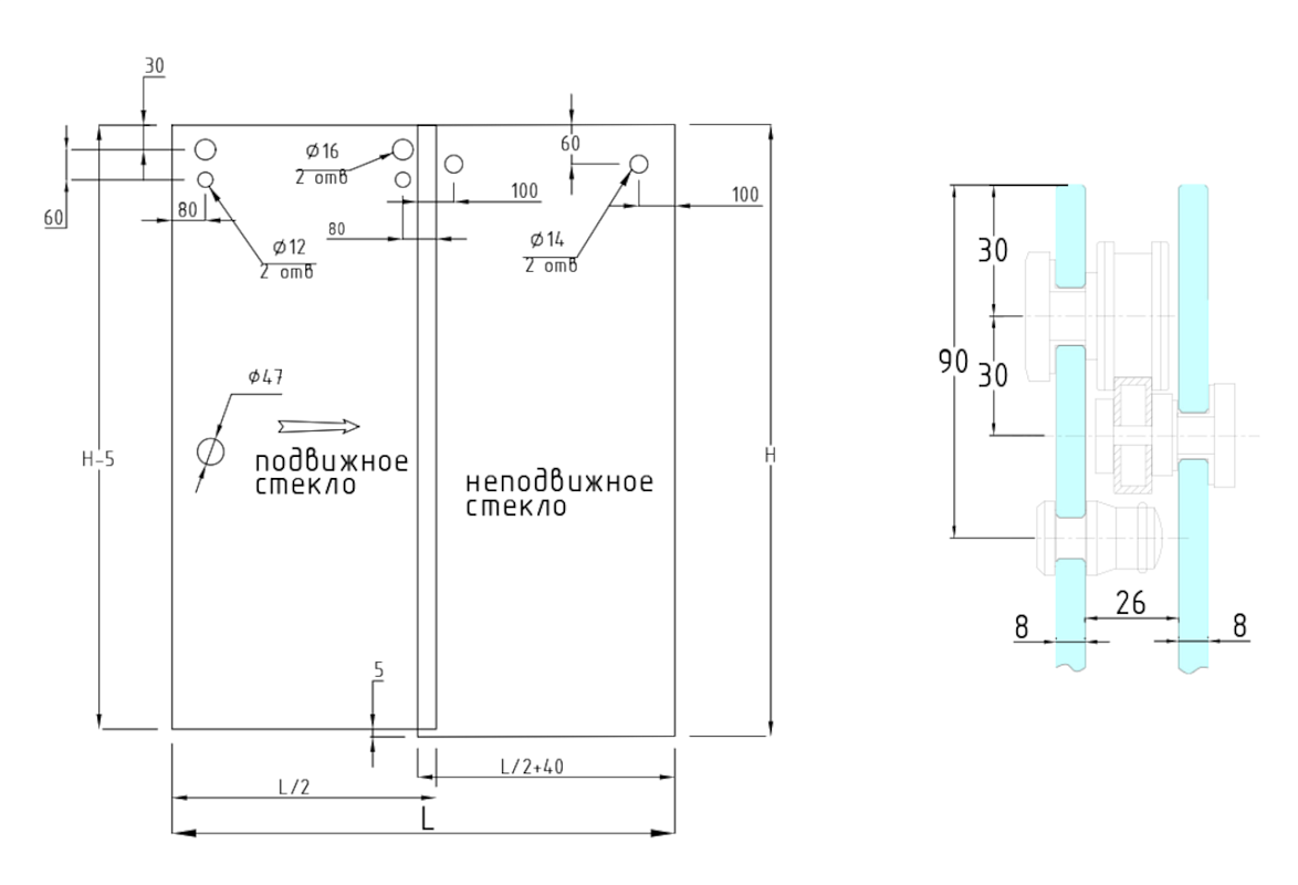 Устанавливаем профиля t756 BL на стену и пол где будут неподвижны стекла. Фиксируем стекла в профиля.
