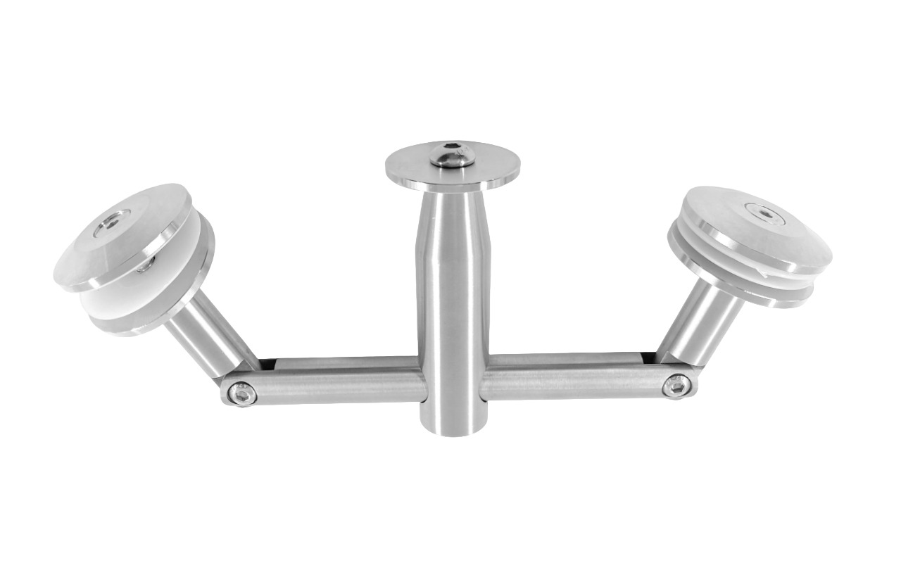 Крепление для двух стекол к ванте, поверхность полированная, марка стали- AISI 304