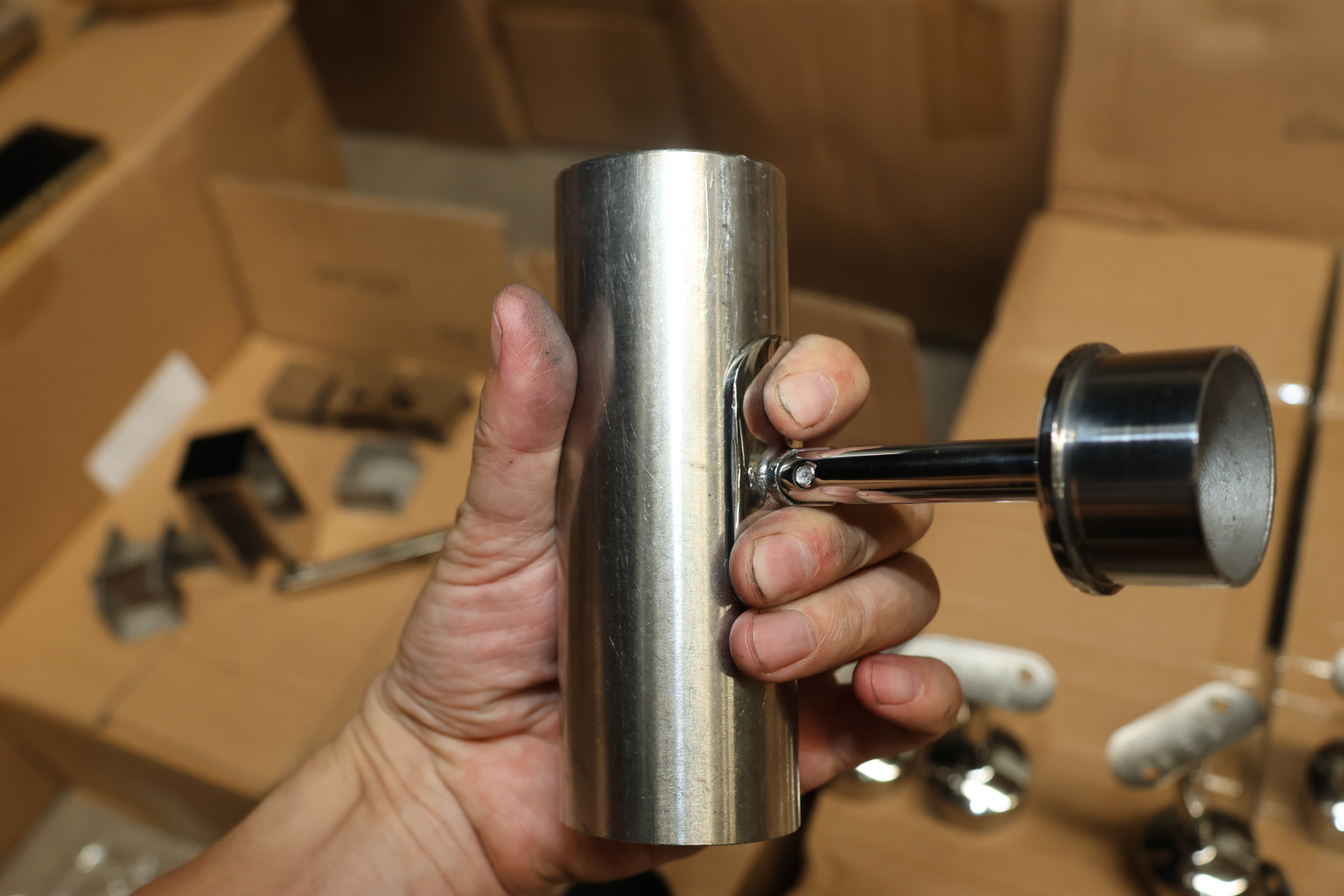 Наконечник палец на стойку Ø42.4х1.5 мм, с регулируемым ложементом под поручень Ø50.8 мм, литой, полированный, нержавеющий AISI 304 k372