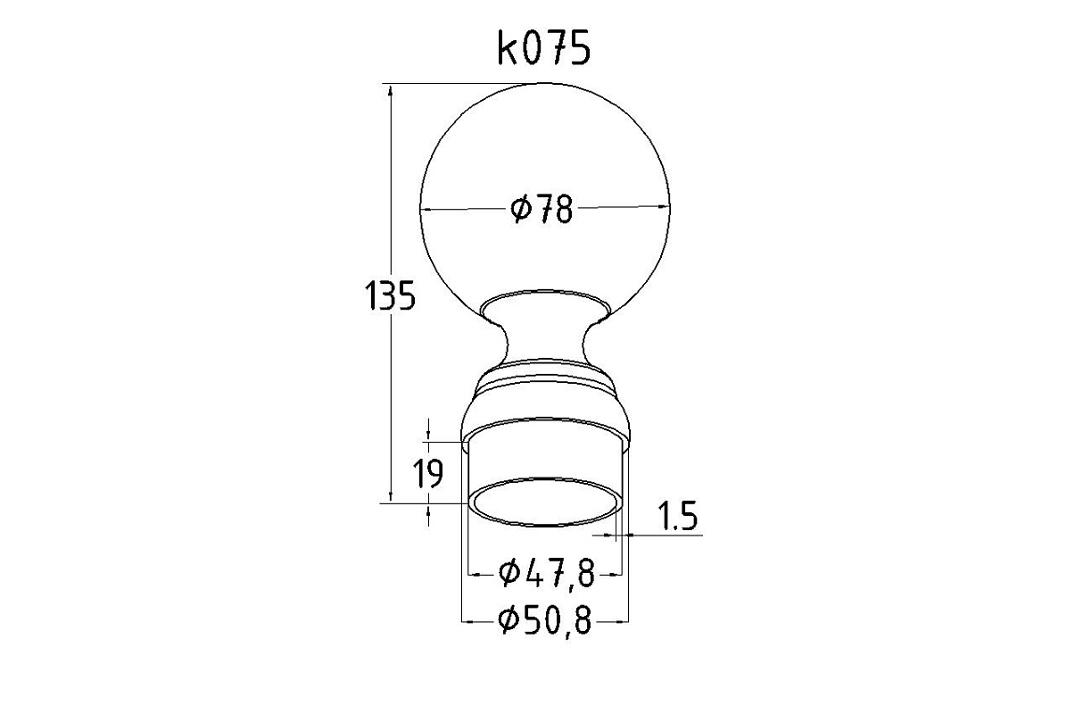 на трубу Ø50.8х1.5 мм диаметр шара 78 мм