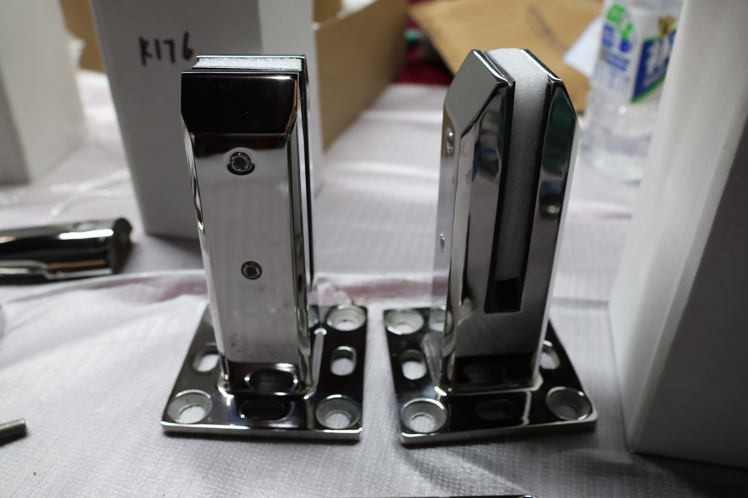 Стеклодержатель напольный 45х50х160 мм, для стекла 10-12 мм, литой, плоский, без сверления, нержавеющая сталь AISI 304, полированная k275-5