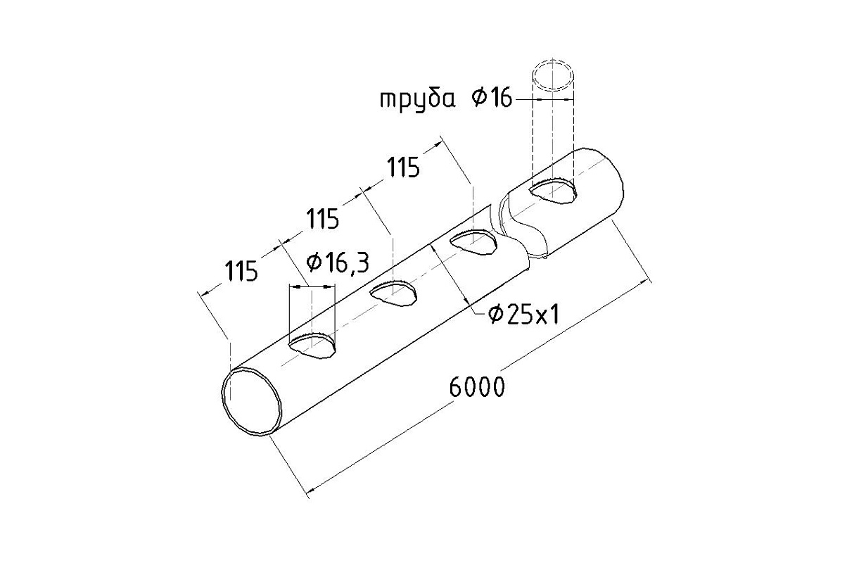 Труба AISI 201 25х1х6000, с перфорацией под Ø16, 90°, GRIT 600 831-1