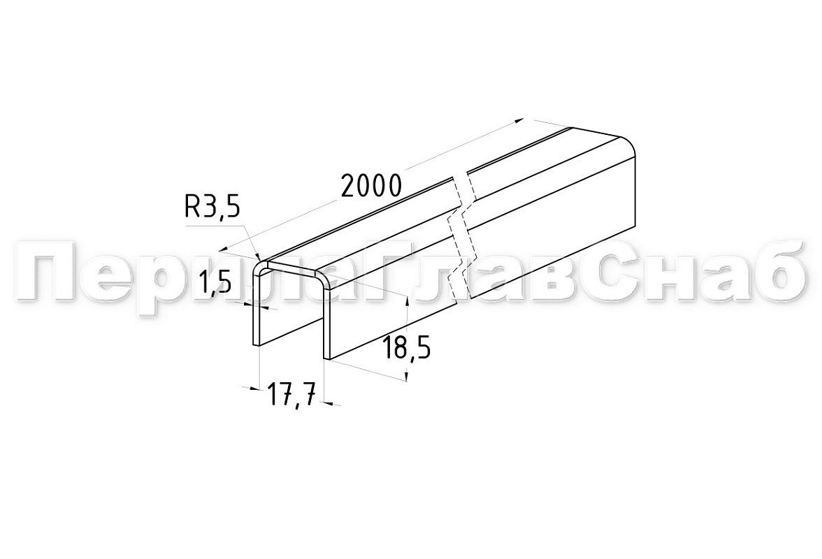 Профиль нержавеющий П-образный 18.5х17.7х1.5х2000 мм под стекло 16 мм, шлифованный. Марка стали - AISI 304