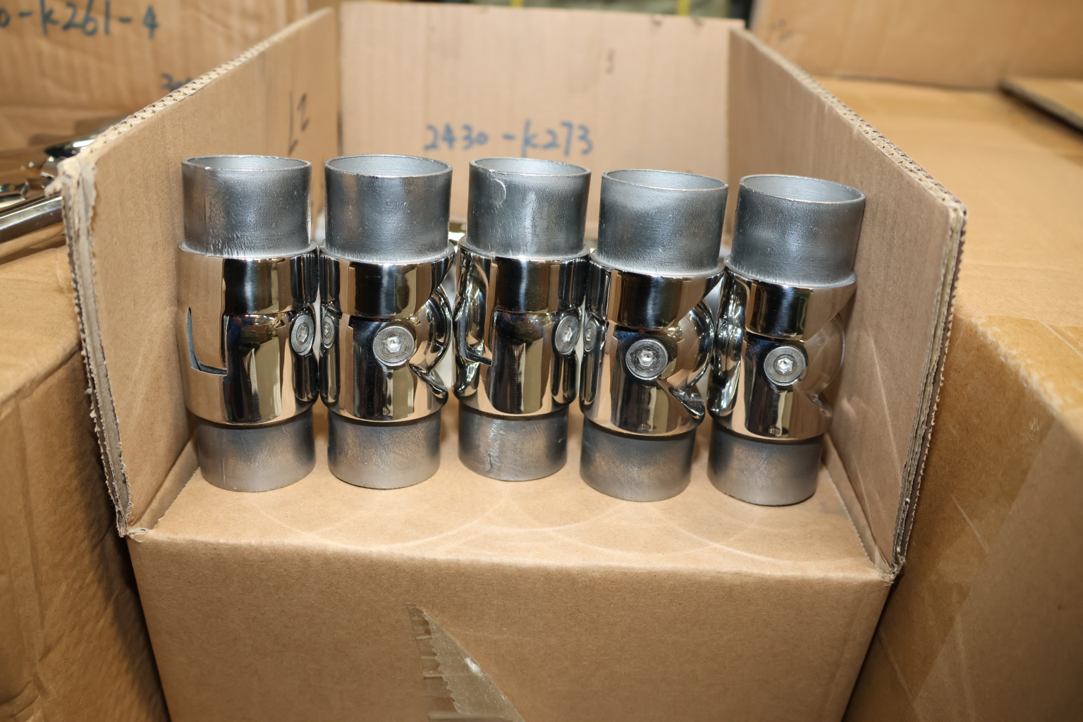 Поворот литой, шарнирный под Ø42.4 мм, полированный, AISI 304 k273