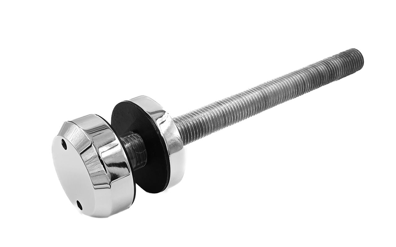 Стеклодержатель Ø50х10х18, шпилька М16х205 мм, для стекла 8-40 мм, с возможностью регулировки выноса до 65 мм, для торцевого крепления стекла, шлифованный, литой, точечный.