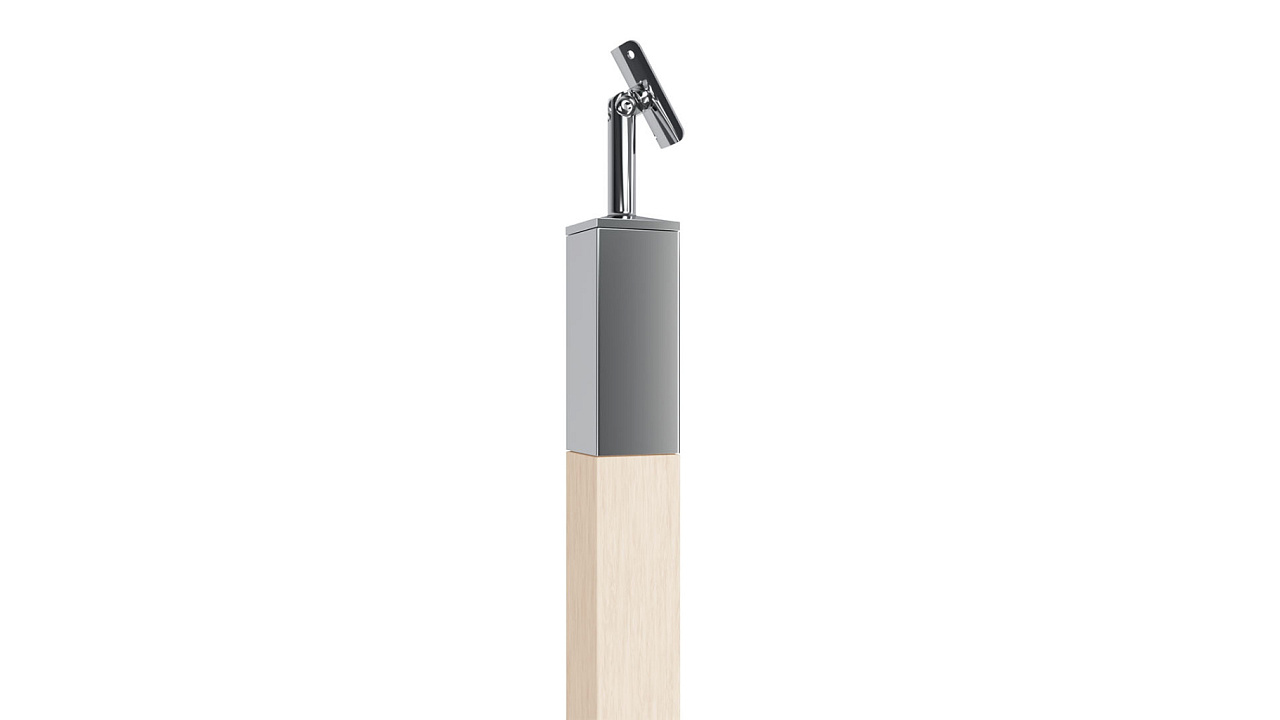 Готовая стойка 40х40х950 мм, деревянная буковая нелакированная, со вставками из нержавеющей стали полир. 2х100 мм k740-9-П