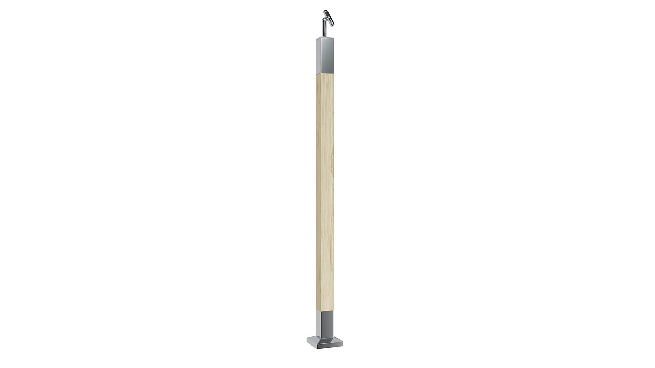 Готовая стойка 40х40х950 мм, деревянная нелакированная, со вставками из нержавеющей стали 2х100 мм k740
