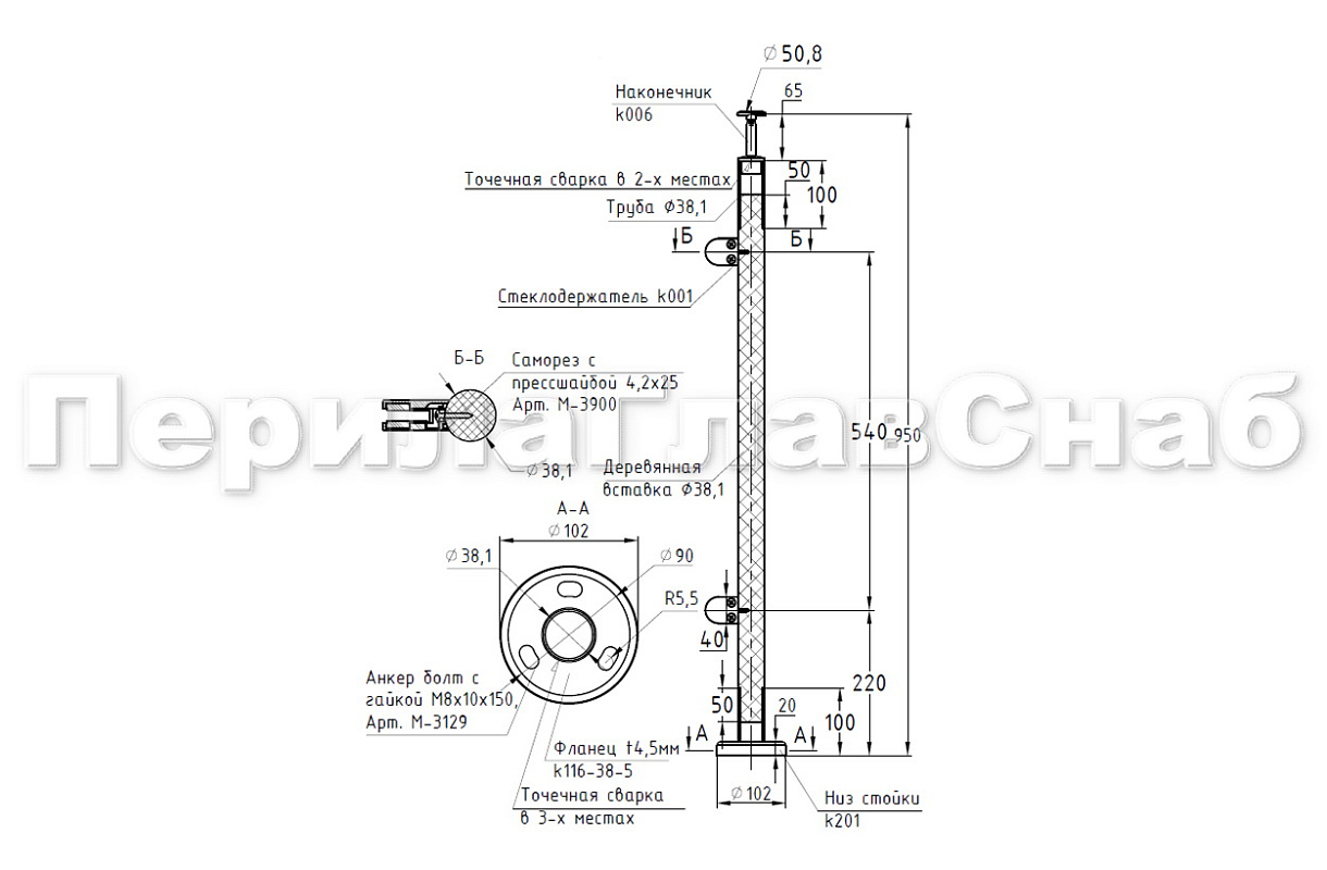 Готовые стойки – это экономия Вашего времени и денег. Приобретая готовую стойку Вы можете собрать ограждение сами, не привлекая монтажную бригаду и экономя денежные средства на монтаже. Стойка легко монтируется к полу благодаря треханкернуму фланцу с отверстиями под анкер-болт М8 ( , , ) или шпильку ( ; ) комплекте с хим анкером Ф-0799 или Ф-0800 , а крепеж скрывает декоративная крышка идущая в комплекте стойки. Поручень из нержавеющей стали можно закрепить при помощи самореза ( , , ), либо при помощи заклепки ( ) и винта М6 ( М-3973) что на порядок эффективней, для крепления при помощи заклепок необходимо растачивать отверстие в ложементе. Если вы используете пластиковый ( , , , , , , ) или деревянный поручень, то его можно закрепить при помощи саморезов ( , М-3850, ). После покраски дубовой проставки подклеиваете клеем ( Ф-1127, Ф-1105 ). Стекло заказывается после установки стоек и снятия размеров. После того, как стекло готово к установке, при помощи шестигранника ( , ) разъединяете стеклодержатель, надеваете стекло и закручиваете обратно.