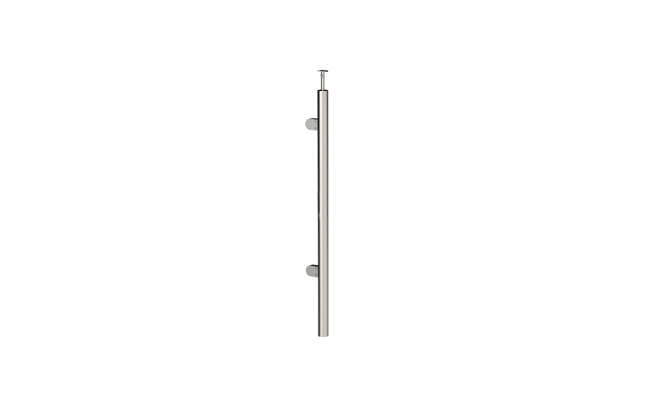 Стойка круглая Ø38.1: 2 штамп. зажимных стеклодержателя, полированная, высота 950 мм (AISI 201) k726-R