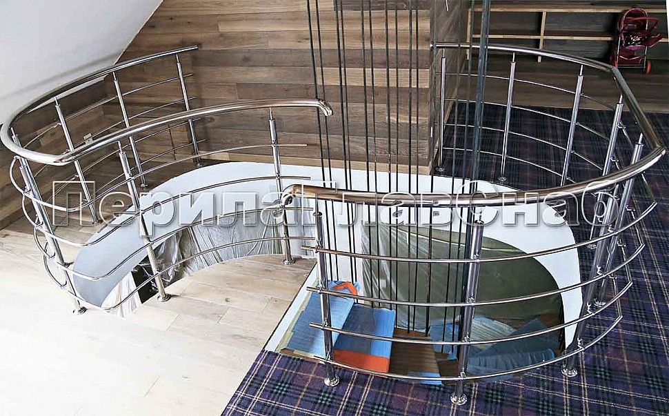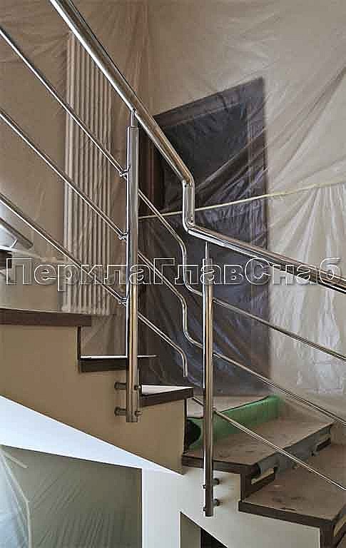 Ограждение лестницы из нержавеющей стали в частном доме пос. Лермантово
