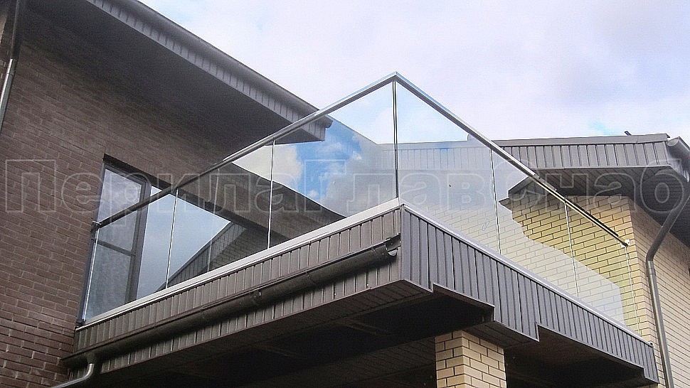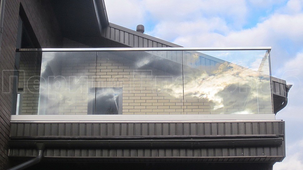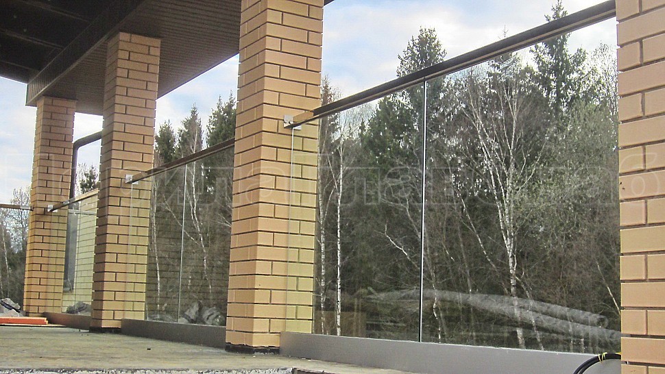 Установили цельностеклянное ограждение на балкон. Стекло установлено в алюминиевый профиль с пазом. Сверху на стекло закреплен поручень из нержавеющей стали. По краям конструкция крепится на фланцы к колоннам и стенам.