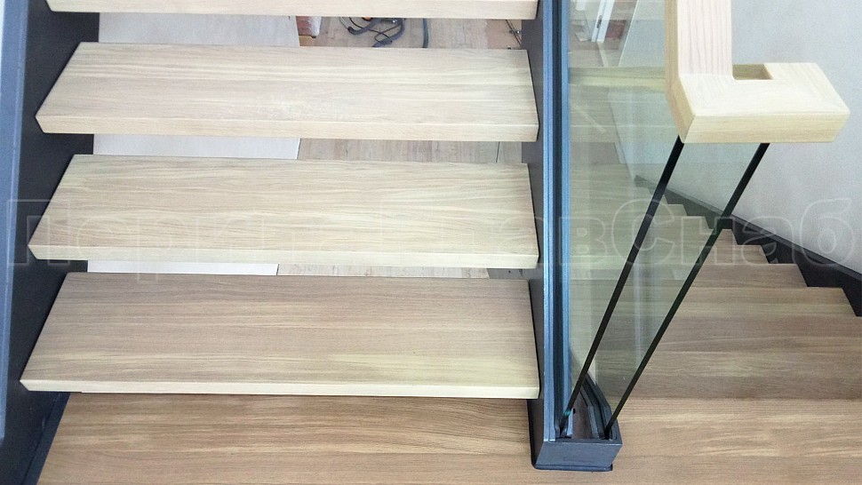 Крайне удачным является решение установить именно стеклянные ограждения на данном объекте: как стекло, так и стальной поручень отлично гармонируют на фоне кирпичной стены шоколадного и соломенного цветов