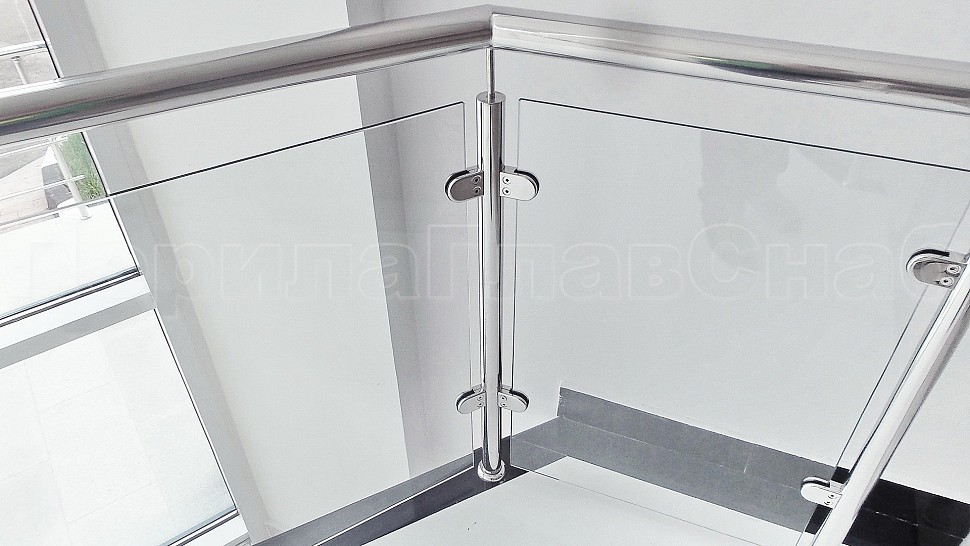 Складскому комплексу с административно-бытовыми помещениями было установлено ограждения двух внутренних центральных лестниц и атриума из полированной нержавеющей стали AISI 201 со стеклом. Высотой 950 мм и 1200 мм, стойки диаметр 38 мм, крепление сверху методом алмазного бурения диаметром 42 мм на глубину 70 мм, устанавливаются через две ступени в третью, наконечник стойки штырь, низ стойки декоративная крышка диметр 56 мм; стекло прозрачное закаленное 8 мм, крепится на зажимных стеклодержателях; поручень диметр 50,8 мм, окончание поручня заглушка. Крепление нержавеющих элементов ограждения между собой точечная аргонно-дуговая сварка, с последующей зачисткой и полировкой. г. Москва, ЗАО, внутригородское муниципальное образование Ново-Переделкино, промзона Орлово, проектируемый проезд 635.