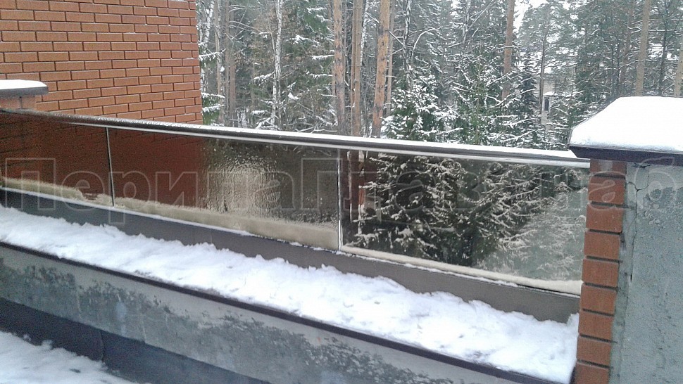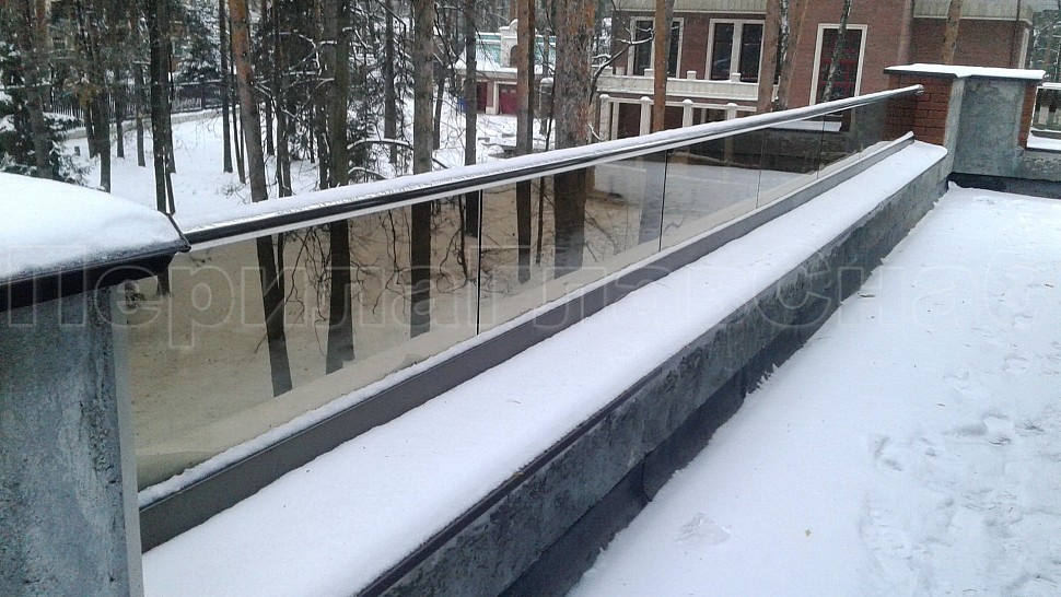 Было произведено ограждение кровли и полированной нержавеющей стали марки AISI304, высотой 600мм от уровня парапета, с установкой на парапет через проставки с каленым стеклом триплекс. Устанавливается в алюминиевый профиль цветом шоколадная бронза, сам профиль крепится в парапет на анкера. Сверху на стекло крепится поручень с пазом диаметром 42мм из нержавеющей стали марки AISI 304, поручень уходит в стену через фланец. Крепление между собой нержавеющих элементов ограждения произведено точечной аргонно-дуговой сваркой, длина швов 2мм, в последствие зачищены и отполированы. Данное ограждение отлично вписывается в интерьер здания, а качественная сталь не дает осечки даже в период холодов и повышенной влажности.