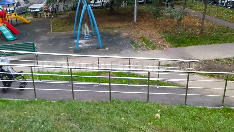 Наша компания «ПерилаГлавСнаб» выполнила заказ на изготовление и монтаж ста пятидесяти метров погонных ограждений из полированной нержавеющей стали, в рамках программы по благоустройству дворовых территорий города Москвы. Так как ограждения устанавливались на улице, мы использовали нержавеющую трубу и комплектующие марки стали Aisi 304. Ограждения состояли из следующего конструктива: