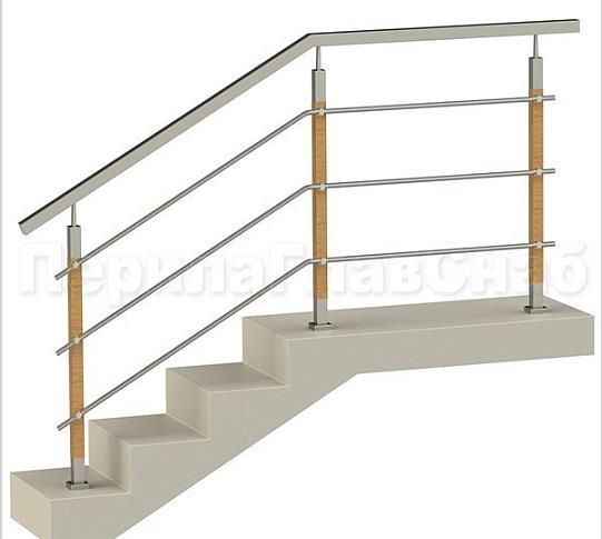 - Три ригеля на держателях, квадратные поручень и деревянные стойки