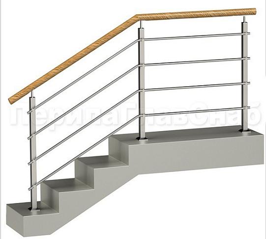 Три ригеля на сварке, квадратный деревянный поручень и круглые стойки