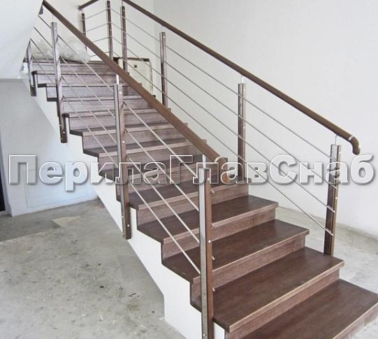 Ограждения с двумя стойками в каждую ступень с деревянным поручнем и без ригелей