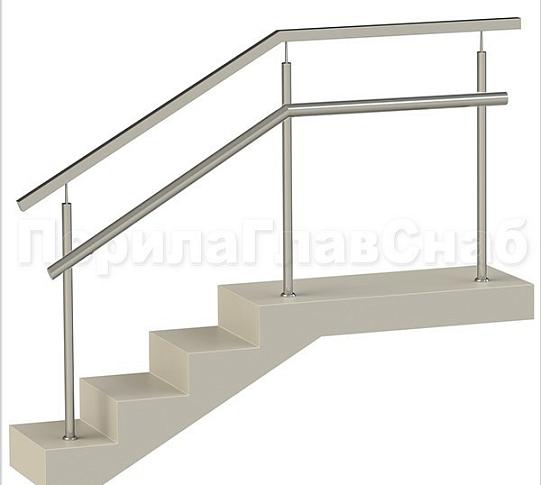 - Ограждения с квадратным поручнем и дополнительным поручнем без ригелей