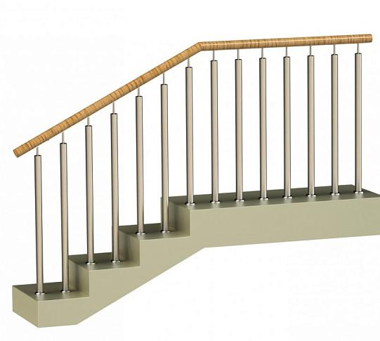 - Ограждения с двумя стойками в каждую ступень с пластиковым поручнем и без ригелей