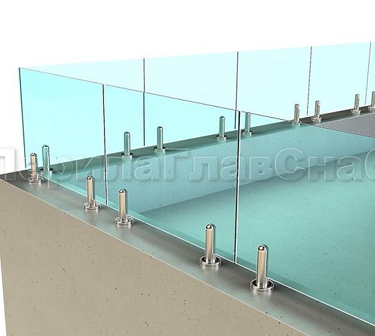 Труба с пазом на несущем стекле. Можно выбрать круглую от 42,4 мм до 60,3 мм или квадратную 40х60 мм.