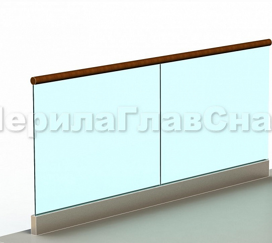 Ограждение с квадратным деревянным поручнем на точечном креплении