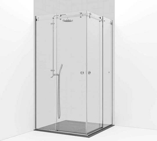 Комплект душевой с внутренней подвижной дверью, толщина стекла 8мм, 900х900х2000, aisi 304, полированная t470 PSS